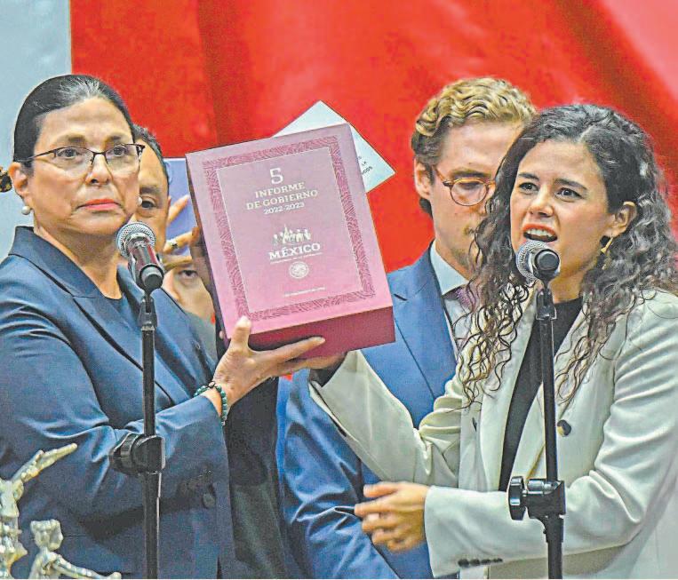 CIUDAD DE MÉXICO.- La secretaria de Gobernación, Luisa María Alcalde Luján, entregó ayer por la tarde el Quinto Informe de Gobierno del presidente Andrés