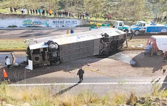 cabina de la pesada unidad. Tras el impacto, los migrantes, quienes viajaban hacia Estados Unidos, empezaron a salir por la puerta de emergencia en el techo
