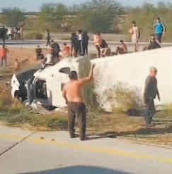 El momento fue captado por testigos del accidente y las imágenes se viralizaron de inmediato, pues de un pequeño espacio se ve salir a un sinfín de personas tratando de huir del peligro inminente. Protección Civil de Sonora informó que no se trató de una volcadura, sino de una salida del camino en la carretera México 15, en el tramo Estación Don-Los Mochis, kilómetro 85 y que dejó como resultado 14 personas lesionadas: dos de ellas fueron trasladadas a Sinaloa y otras 10 a Navojoa, en Sonora.