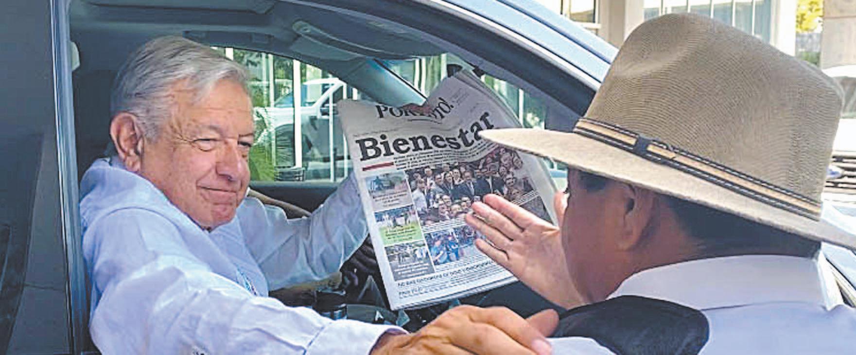 ANDRÉS Manuel López Obrador tuvo una nueva jornada de revisión de las obras de la Cuarta Transformación junto con el gobernador Mauricio Vila Dosal; en el inicio, con un ejemplar de POR ESTO! en la mano, el mandatario envió su reconocimiento a los pilares de los hogares mexicanos.- (Diana Várguez)
