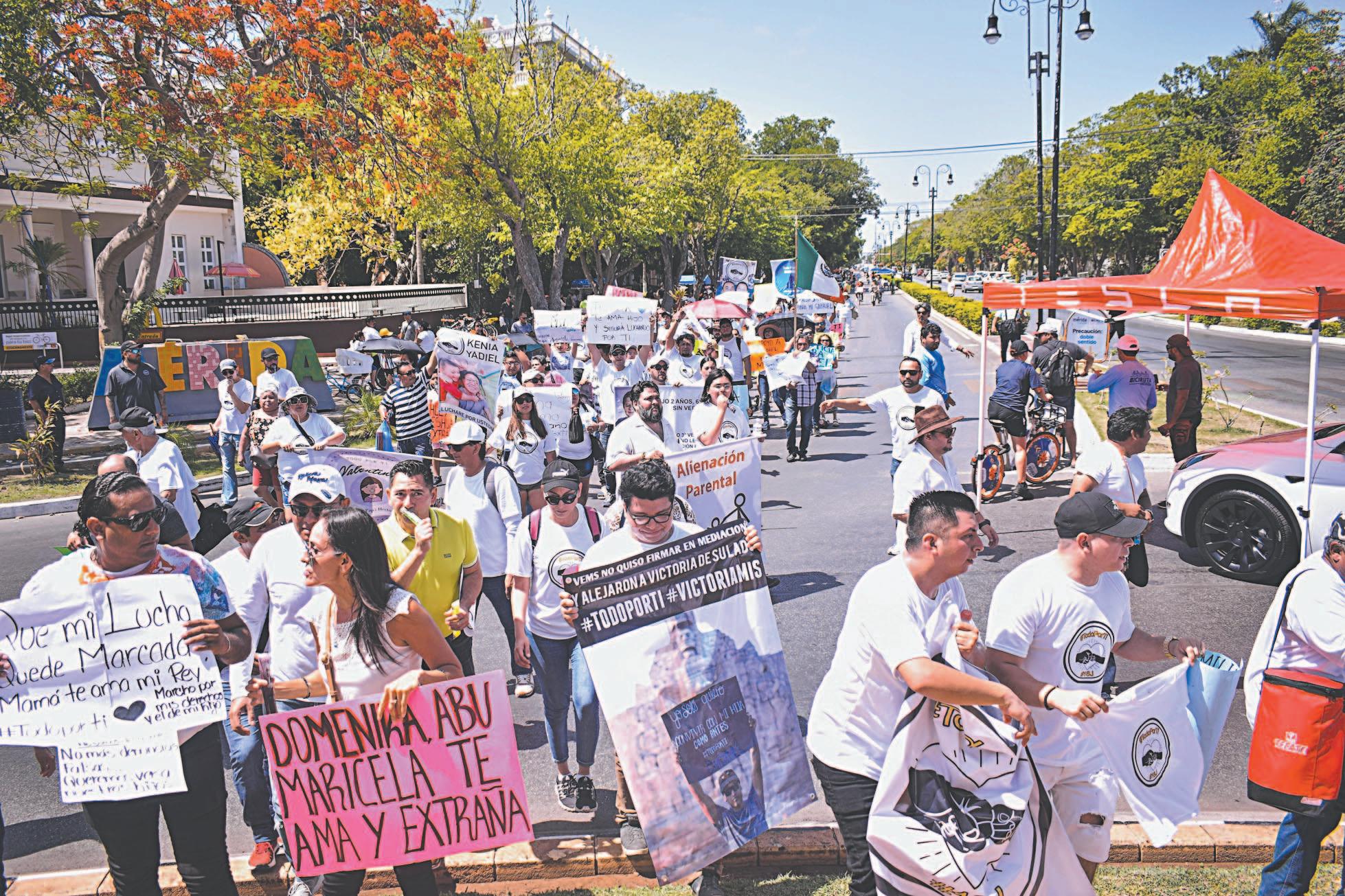 CON la consigna “¡Si la ley no les llega, que la vergüenza los alcance!”, mujeres se manifestaron públicamente para concientizar sobre la Ley Sabina contra Deudores Alimentarios yucatecos.- (Saraí Manzo)