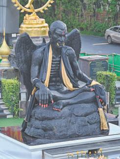 Una inmensa estatua negra de una figura alada, con colmillos dorados y garras rojas, inaugurada este mes en una transitada calle de Bangkok, se convirtió en tema de polémicas en la capital de Tailandia.