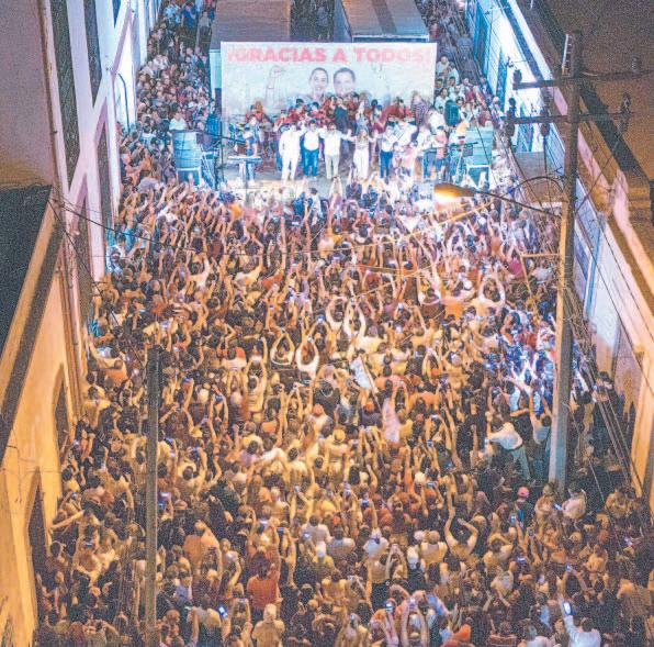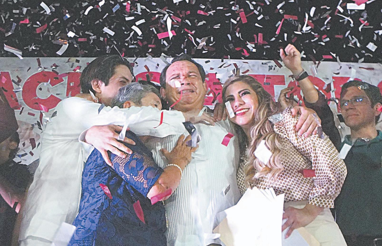 EN un encuentro con miles de personas que celebraron el triunfo en las urnas, el aspirante guinda, emocionado hasta las lágrimas, reiteró -junto a su familia- que anteayer fue el día más esperado de su vida y se comprometió a gobernar sin distingos para todos. Los gritos de “sí se pudo” y “gobernador” retumbaron en las calles.- (Nadia Tecuapetla)