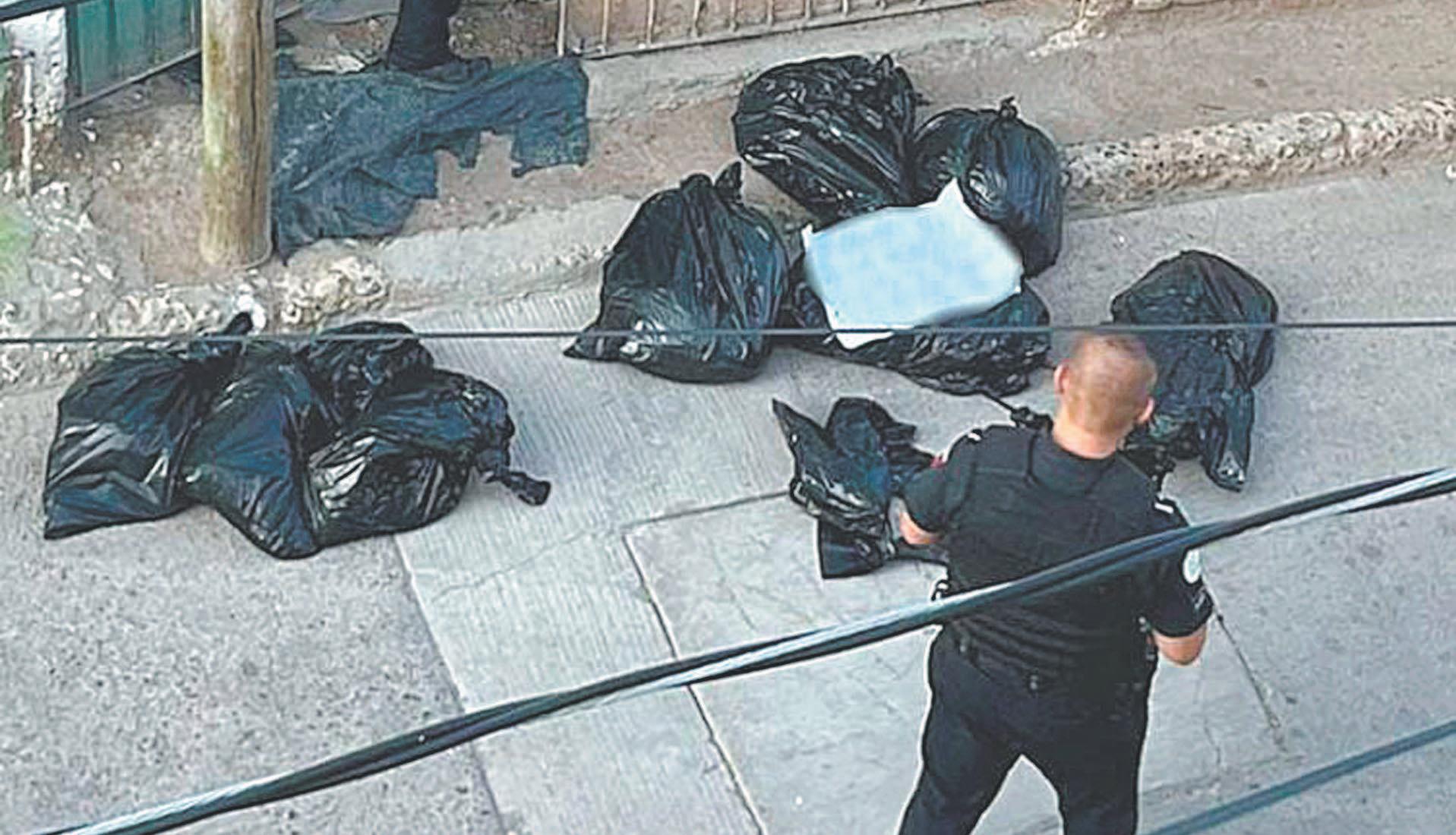Fueron los vecinos de la privada Martínez quienes se toparon con los envoltorios cerca de las 7:00 horas de ayer, cuando se dirigían a trabajar. En un reporte preliminar en la zona, elementos de Seguridad aseguraron que en las bolsas plásticas negras había al menos los cuerpos de cuatro personas sin vida, tres hombres y una mujer.