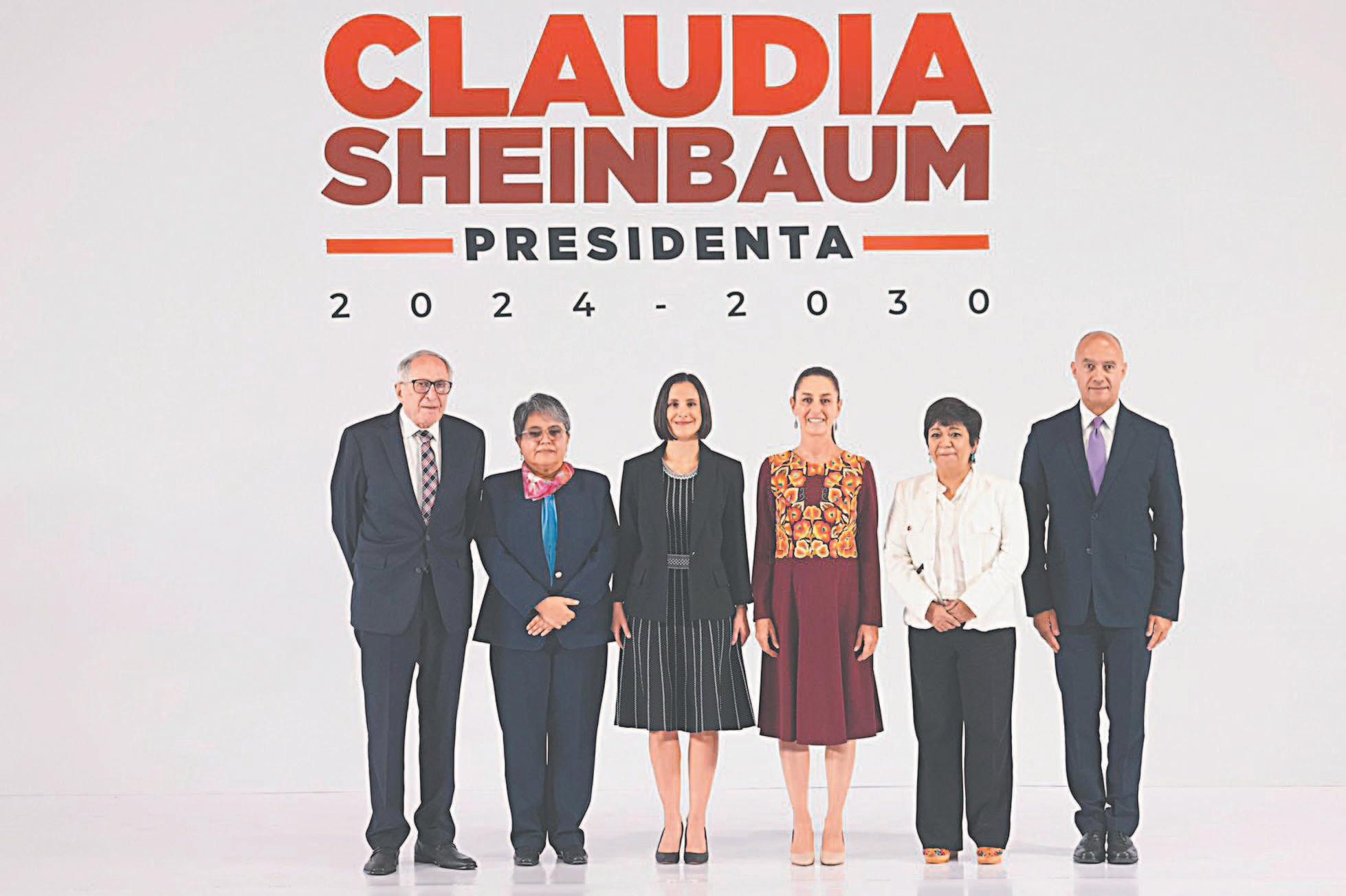 LA Presidenta entrante resaltó que los recién nombrados se han desempeñado de manera sobresaliente en la Administración Pública. La acompañaron (de izquierda a derecha), los secretarios de Salud, David Kershenobich; de la Función Pública, Raquel Buenrostro; de Energía, Luz Elena González; de Desarrollo Agrario, Edna Elena Vega Rangel, y de Comunicaciones y Transportes, Jesús Antonio Esteva