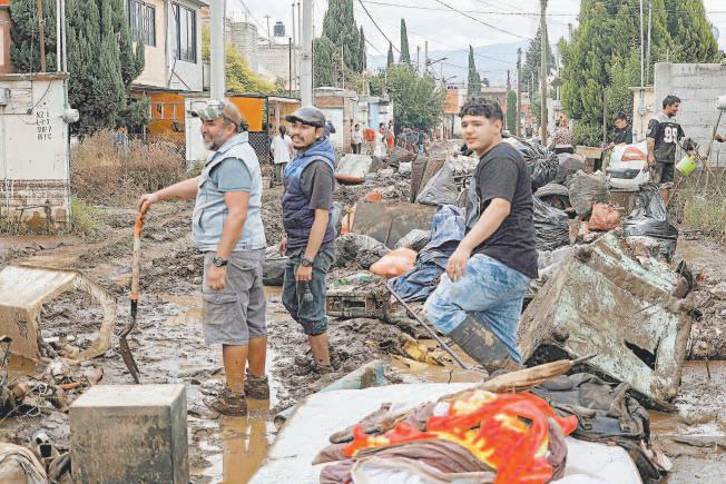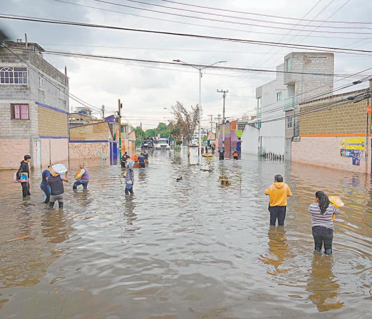 sonas para realizar trabajos de limpieza, entre personal del Gobierno Municipal, del organismo de agua local, de la Comisión Estatal del Agua del Estado de México, Comisión Nacional del Agua, Protección Civil estatal, Guardia Nacional y la Secretaría de la Defensa Nacional. José Hernández Carmona, director de Gobierno, indicó que en los tres fraccionamientos contabilizaron alrededor de 650 casas afectadas, puntualizando que en ellos no llo-