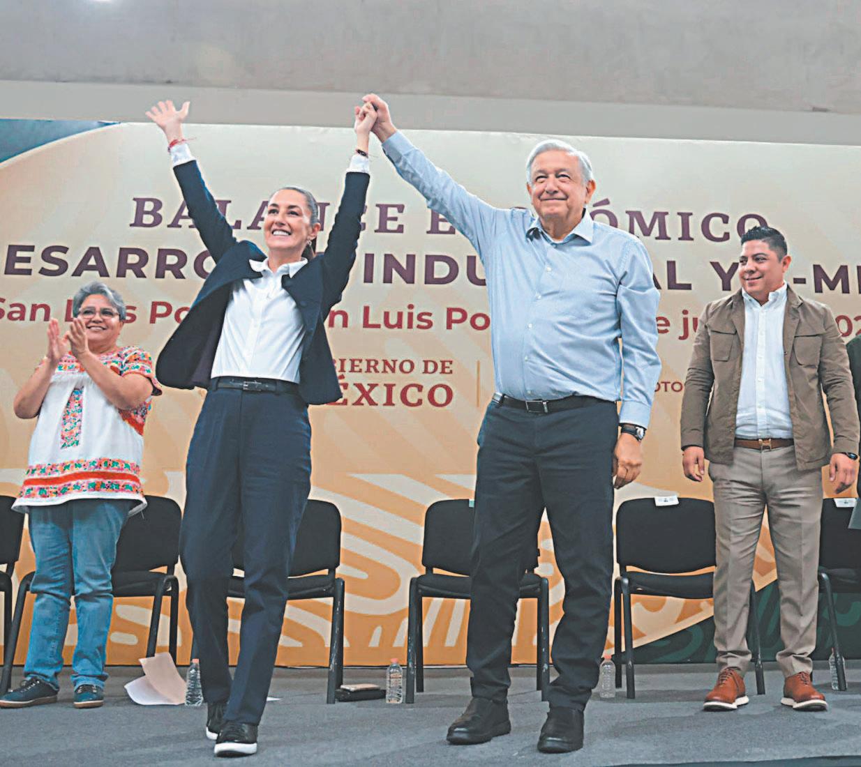 En su intervención en el Centro de Convenciones de esta entidad, Sheinbaum estuvo acompañada, además, por integrantes del equipo del mandatario federal, algunos de los cuales formarán parte de su gabinete a partir del 1 de octubre, así como otros que también trabajaron con el actual Mandatario.