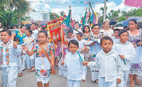 Con desfile de gremios, inician festejos religiosos en Uayma
