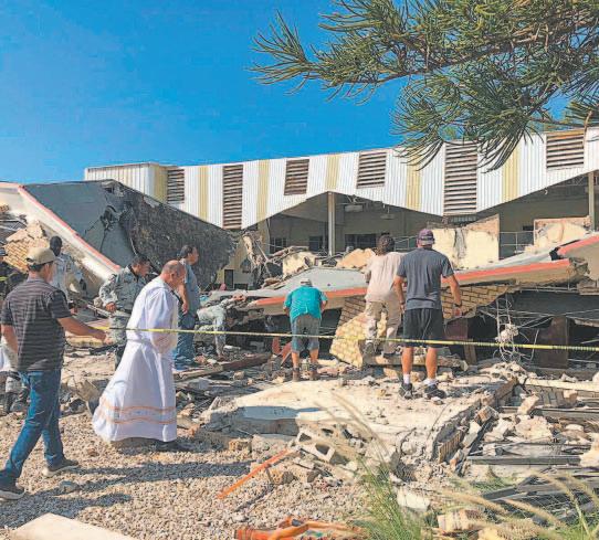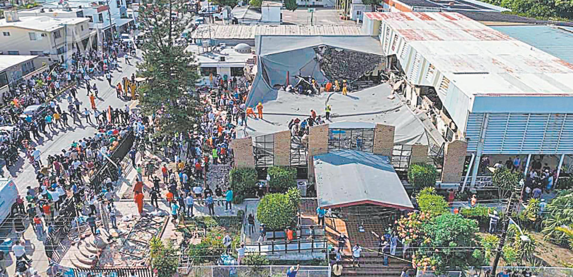 ENTRE escombros, brigadistas de diversas corporaciones realizaban anoche trabajos de búsqueda y rescate de personas que se encontraban en una celebración eucarística en la parroquia dela Santa Cruz; las autoridades anunciaron que llevarán a cabo una investigación exhaustiva para determinar las causas del colapso y cuantificar la magnitud del incidente.- (POR ESTO!)
