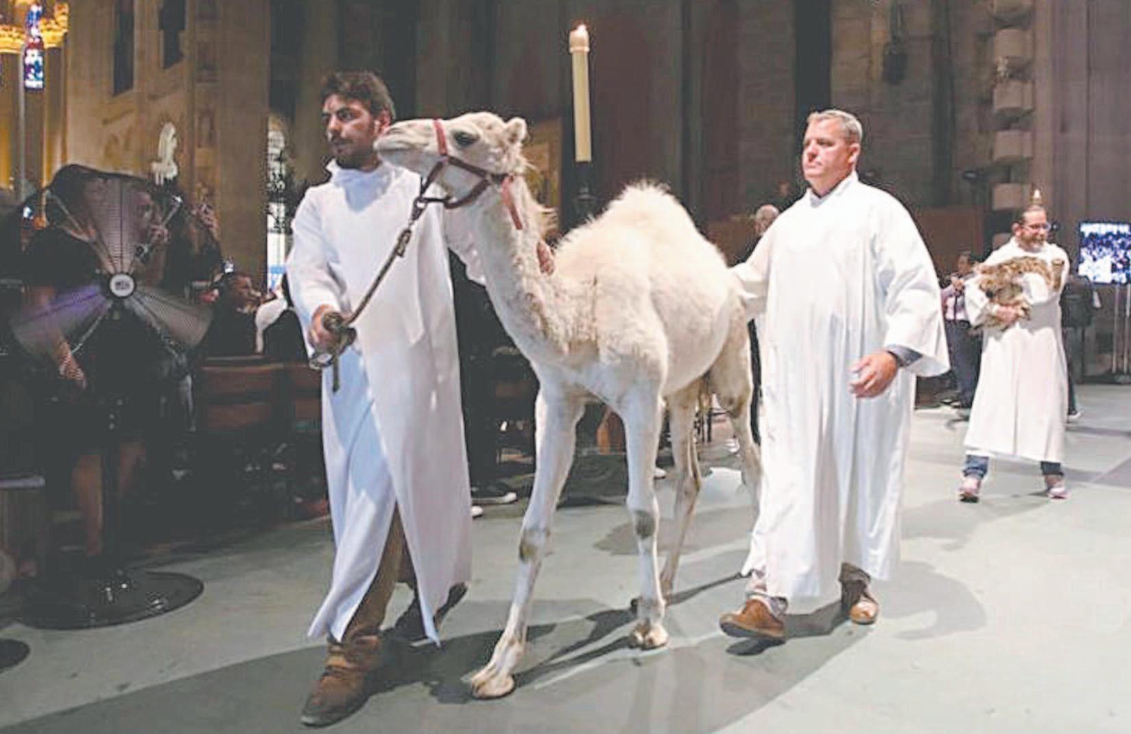 Un camello, un búho, serpientes, un caimán, ponis, avestruces, ocas, conejos perros y gatos participaron en la ceremonia, oficiada por el Obispo de la ciudad