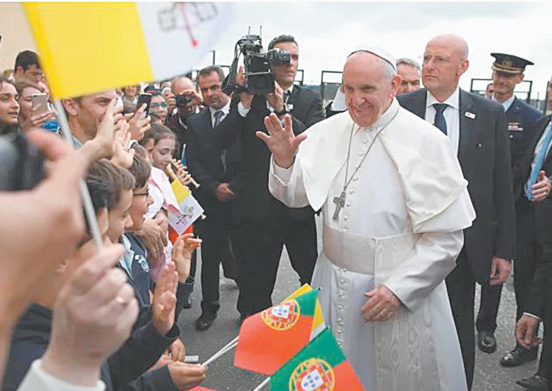 A su llegada, el Papa fue recibido en la entrada principal por el Patriarca de Lisboa, Cardenal Manuel Clemente, y por el presidente de la