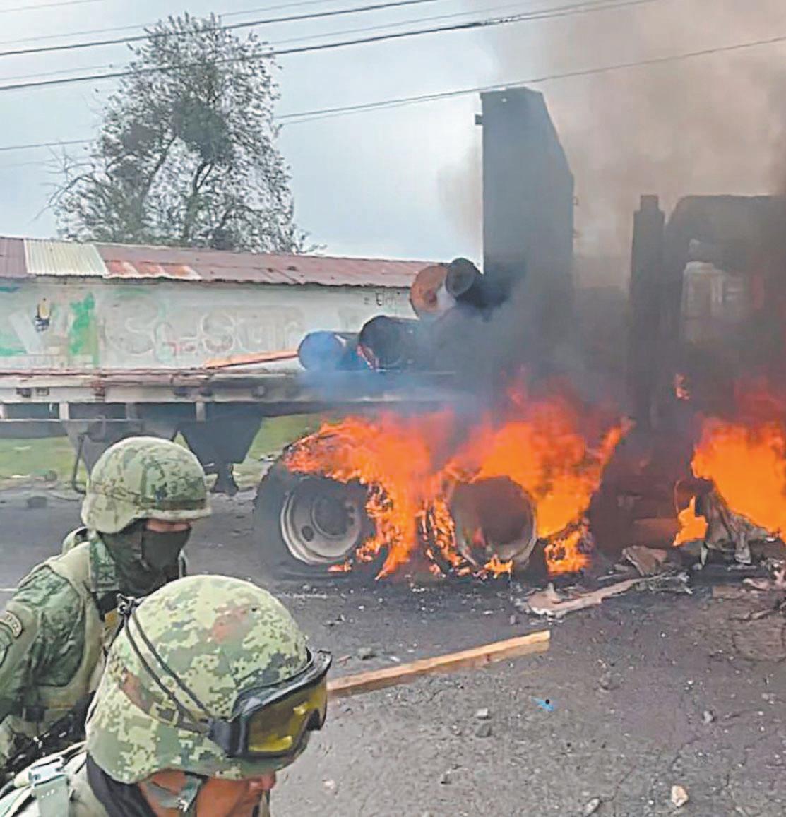 TRES camionetas y una plataforma fueron incendiadas por pobladores inconformes con los operativos que han realizado últimamente elementos de la Sedena y Guardia Nacional por tala clandestina.- (Cuartoscuro)