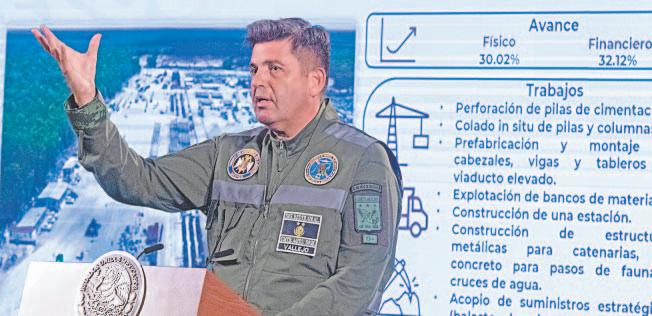 En la conferencia matutina del presidente López Obrador, el general Ricardo Vallejo destacó los avances en la construcción de los tramos