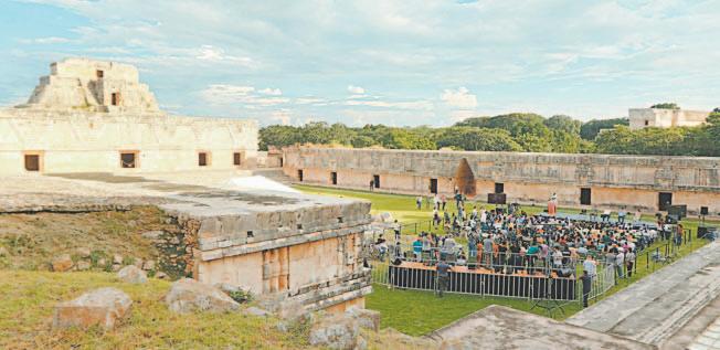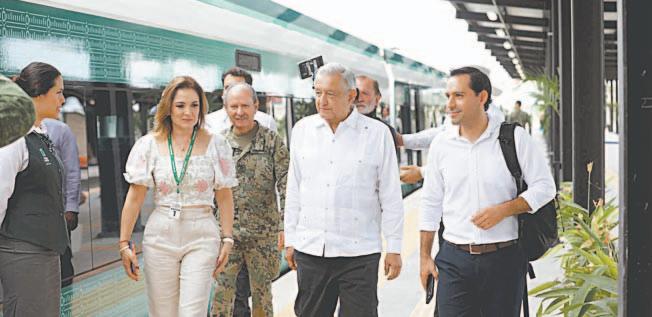 FRENTE al Cuadrángulo de las Monjas, en Uxmal, donde cerró su gira de supervisión de avances de la obra emblema del sexenio, luego de recorrer el tramo que une la terminal de Teya con Calkiní, Campeche, Andrés Manuel López Obrador afirmó que el ferrocarril le dará vida a los estados que recorre, pues ya impulsa en la zona un crecimiento nunca antes visto.- (POR ESTO!)