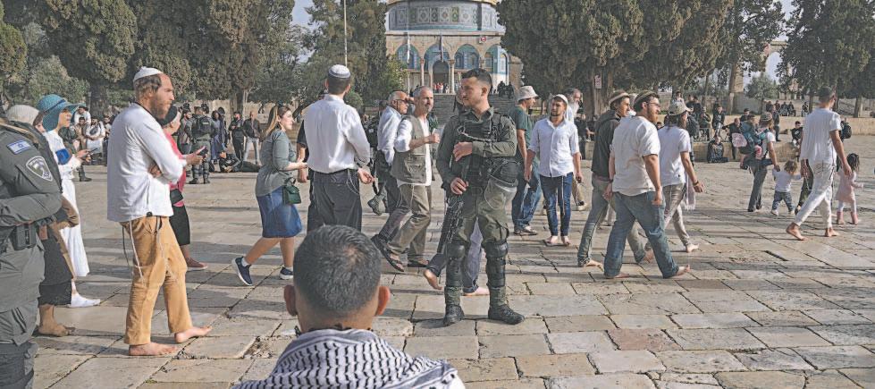 Cientos de judíos visitaban también el complejo bajo fuerte protección policial el domingo, entre silbidos y cánticos religiosos de los palestinos en protesta por su presencia.