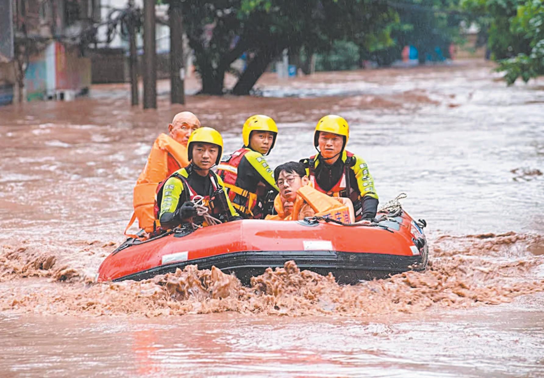 Decenas de miles de personas han sido trasladadas a refugios debido a las fuertes lluvias en el Norte, Centro y Sureste del gigante asiático, golpeado también por una ola de calor extremo