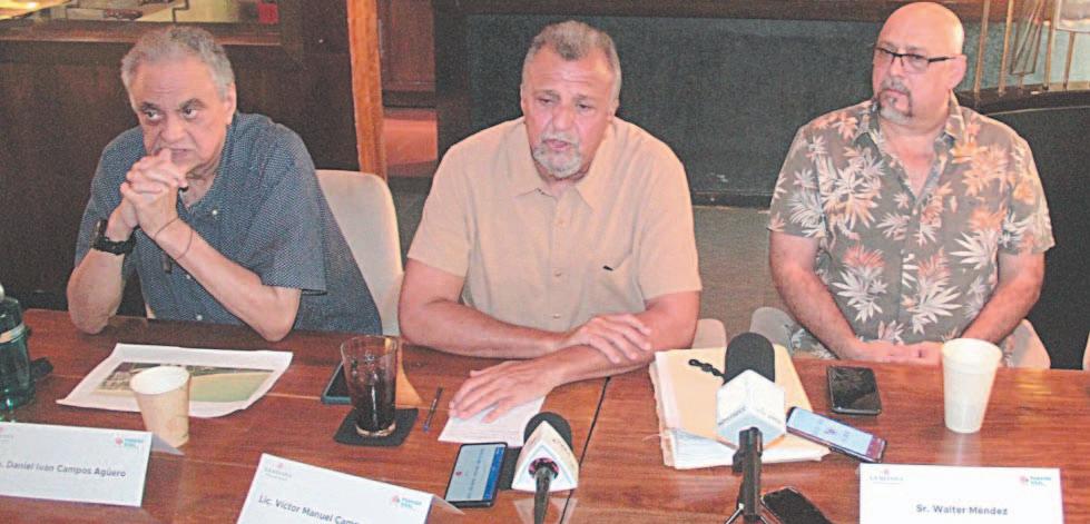 “Si alguna persona de las que están construyendo o construyó incumple en algo, esa es responsabilidad de cada propietario y no tiene ninguna relación con nosotros”, se deslindó Víctor Campos Agüero (al centro), acompañado de su hermano Daniel Iván (izq.) y de Walter Méndez Agüero. Autoridades federales niegan permiso para edificar Costa Esmeralda, en los tablajes vendidos por la Inmobiliaria El Palmar de Sisal, por diversas irregularidades.- (POR ESTO!)