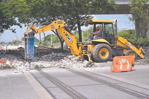 LAS obras en la salida al fraccionamiento buscan agilizar la vialidad en la glorieta para que, al momento en que entre en operación el transporte eléctrico, su tránsito sea más libre. Comenzará a funcionar en diciembre.- (Diana Várguez)