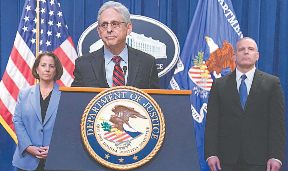 Se examinan y actualizan las listas de distribución, evaluando cómo y dónde se comparte el material de inteligencia”.El anuncio de Garland, junto al subdirector del FBI, Paul Abbate, y la fiscal Lisa Monaco. (AP) Manifestación de apoyo al medicamento frente a la Corte Suprema. (AP)