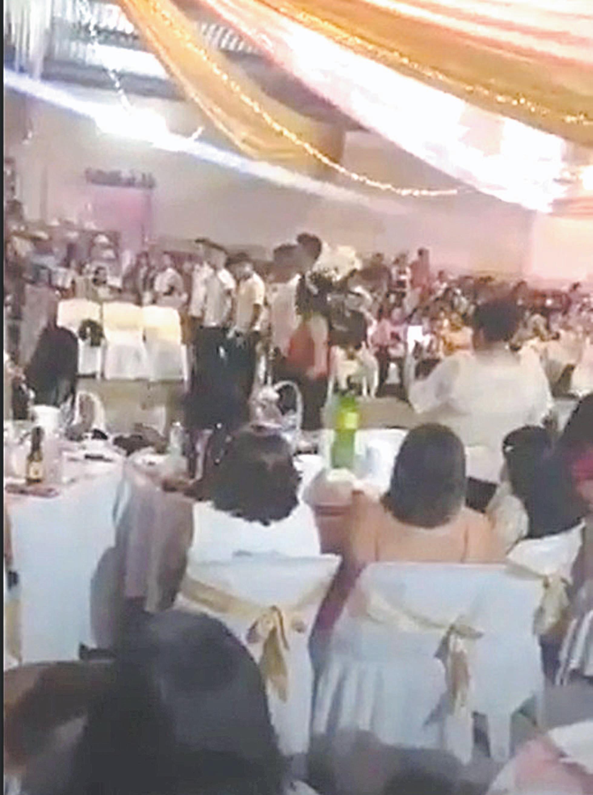 Dos hombres encapuchados se acercaron al evento y uno de ellos disparó un arma, según reportes preliminares. Los dos luego salieron huyendo. La Policía dijo que al parecer no se trató de un hecho al azar.