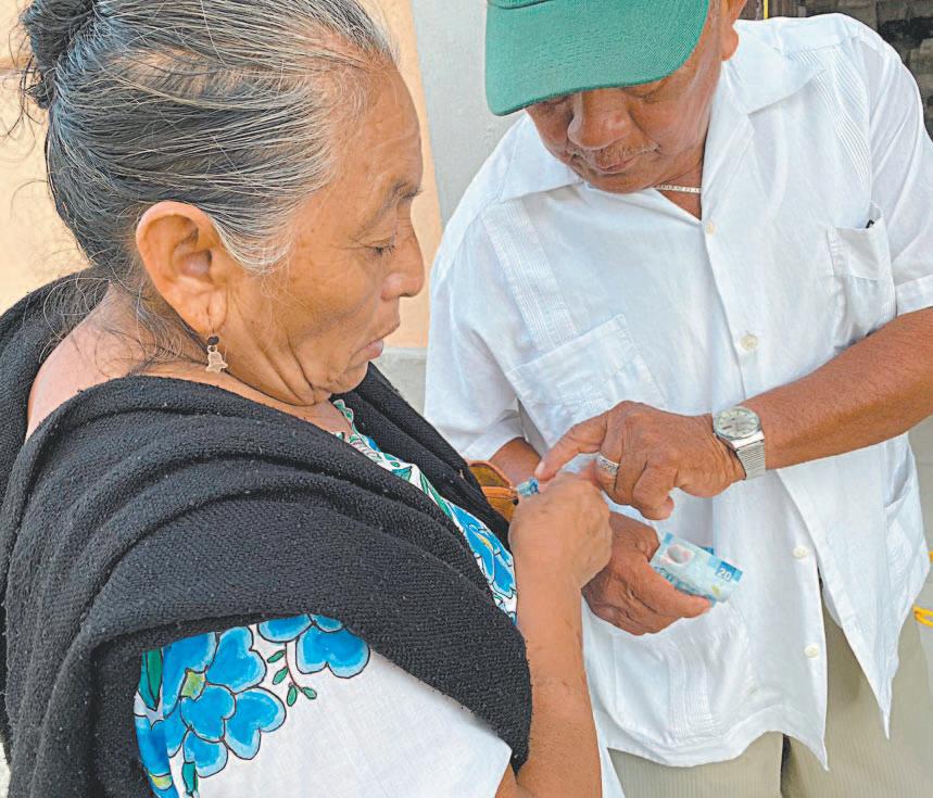beneficiarios brindando información sobre pensiones, becas y Programas de Bienestar, los cuales se dispersan a través de la financiera federal.