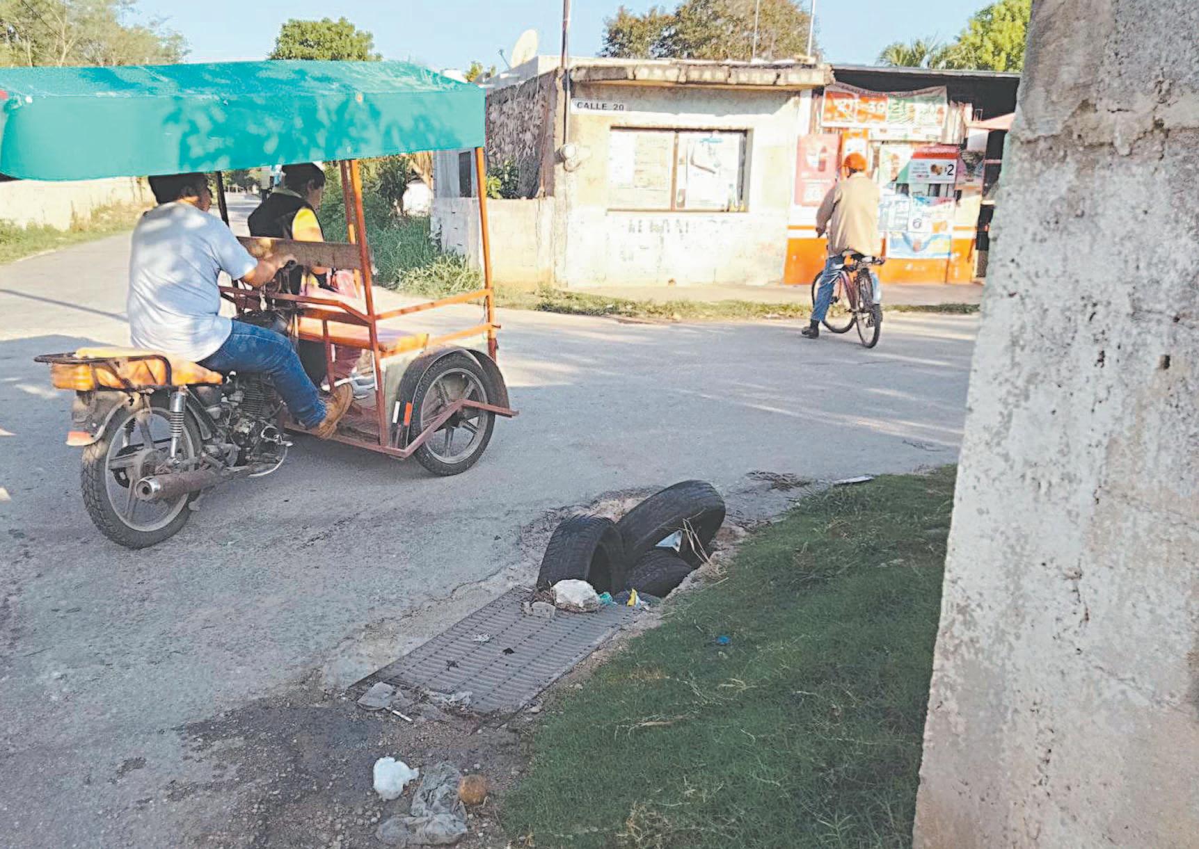 Doble peligro por zanjas destapadas en céntricas calles de Acanceh