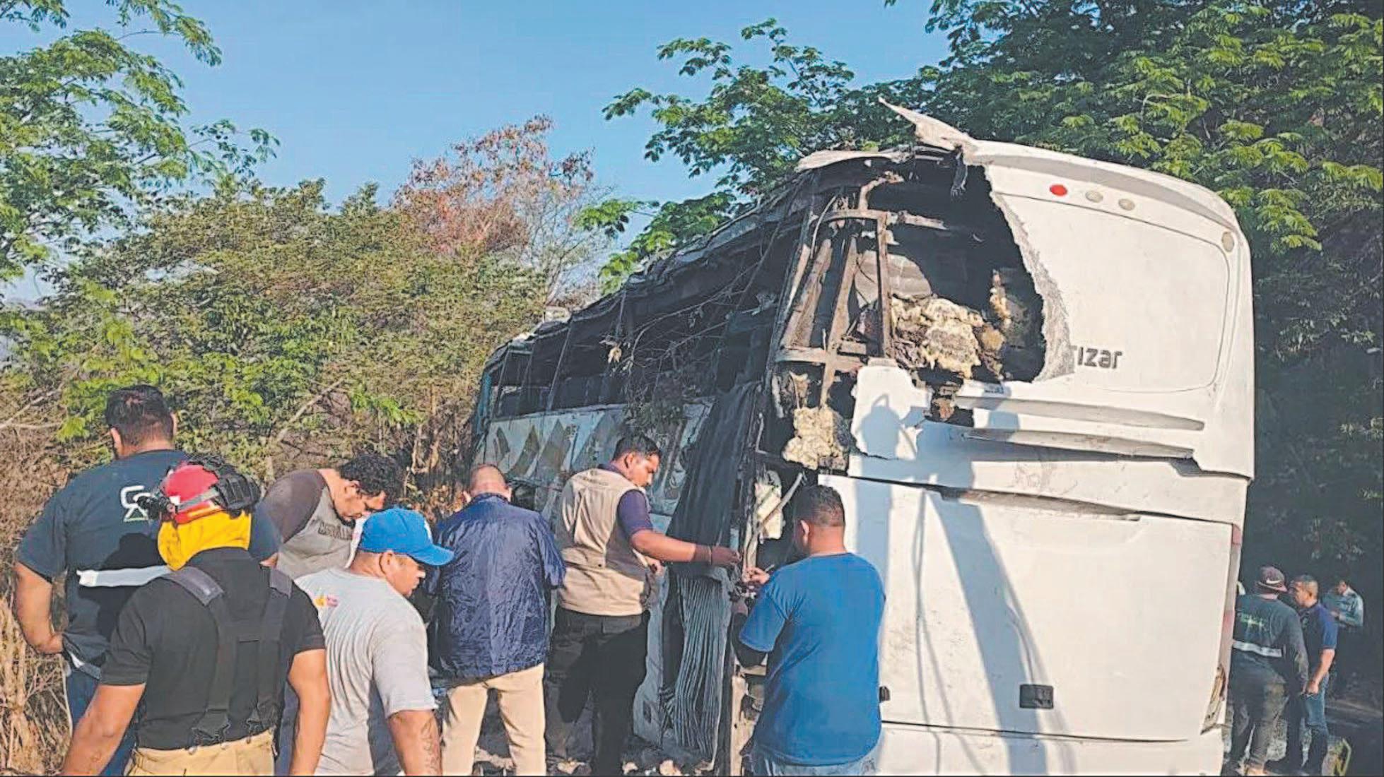 El Alcalde ordenó traer químicos desde Brownsville. (POR ESTO!) Sheinbaum viajó a Mazatlán a dar conferencia. (Cuartoscuro) Miguel Ángel Menéndez Cámara Patricia María Menéndez Cámara Sergio Rugerio Palacios Mario Renato Menéndez Rodríguez Fundador y Director Honorario Alicia Menéndez FigueroaTEPIC, Nay.- La volcadura de un autobús con turistas hacia un barranco en el kilómetro 49 de la carretera federal 200 Tepic-Puerto Vallarta, en Nayarit, dejó un saldo de 18 personas sin vida, además de 33 heridas, anunció ayer la Fiscalía General del Estado a través de un comunicado. El siniestro ocurrió este sábado a las 20:00 horas, pero fue hasta ayer por la mañana al concluir las labores de rescate cuando la Fiscalía estatal reportó el percance, en el que perdieron la vida siete hombres y 11 mujeres; los heridos, 11 de ellos menores de edad de entre tres y 17 años, fueron trasladados a tres nosocomios ubicados en Tepic y Compostela. La unidad particular se dirigía a Guayabitos, Compostela, e iba con pasaje turístico proveniente de Guadalajara, Jalisco, reportó la Fiscalía. Se indicó que el autobús particular cayó en un barranco de aproximadamente 15 metros en la carretera federal 200 Tepic-Puerto Vallarta, en Nayarit, a la altura de la localidad de Mesillas, municipio de Compostela. La Secretaría de Seguridad y Protección Ciudadana de Nayarit expuso que recibió un reporte al 911 del accidente, por lo que se presentaron elementos de la Policía Estatal, bomberos, Protección Civil de Compostela y la Cruz Roja Mexicana.