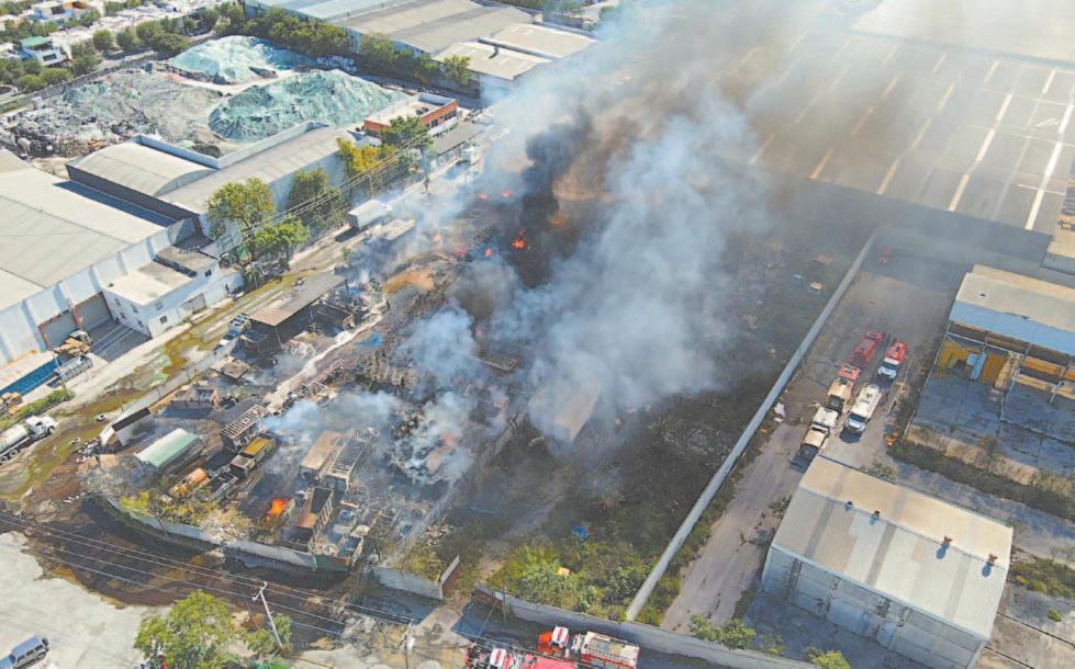 MONTERREY, N.L.- Una recicladora de químicos que tiene por nombre Recolecciones Ecológicas S.A. de S.V. se incendió ayer por la tarde en el Parque Industrial Milimex, en el municipio de Apodaca, Nuevo León.