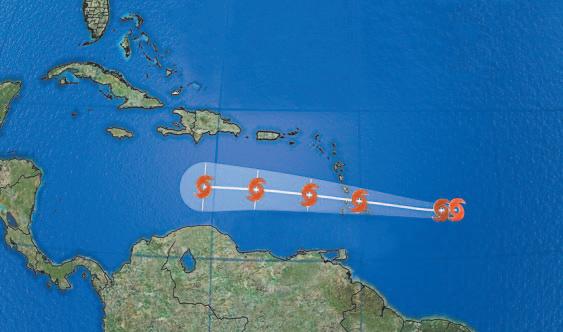 y se pronostica que se fortalecerá más antes de azotar este jueves por la noche las islas orientales del Caribe, con fuerza cercana a la de un huracán. Se emitieron avisos preventivos para Santa Lucía, la isla francesa de Martinica, Barbados y Dominica.