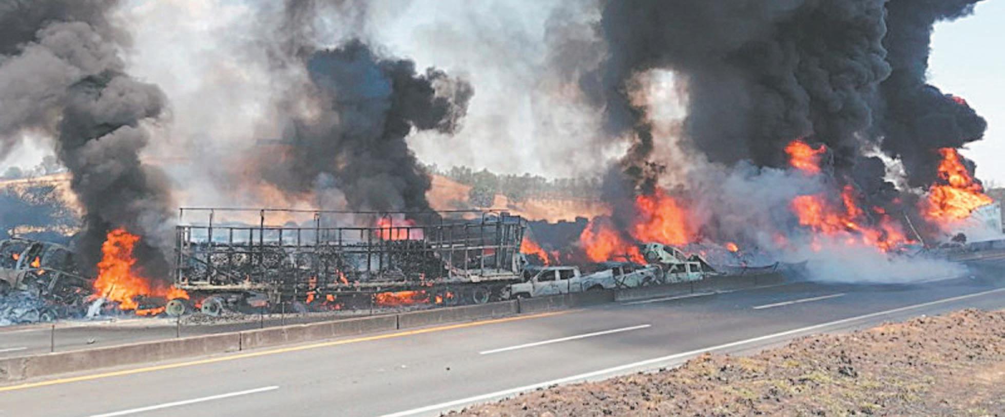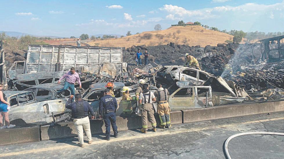 EN total, fueron 16 vehículos los involucrados en el accidente cerca del municipio de Jalistotitlán, Jalisco: seis camionetas, cuatro automóviles, cuatro tráileres, un torton y un camión de valores.- (POR ESTO!)