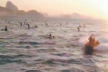 Los socorridos realizaban stand-up paddle para asistir a la salida del Sol desde el agua, una práctica corriente entre locales y turistas en una de las playas más famosas del mundo.