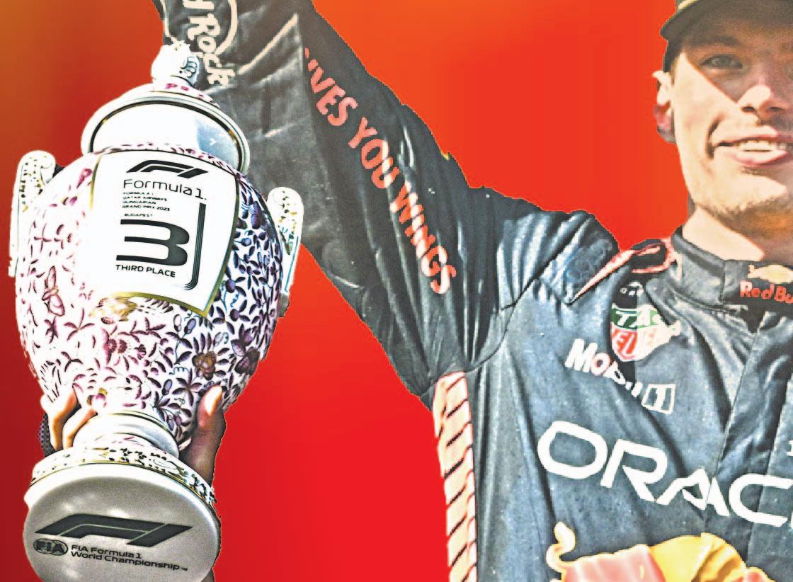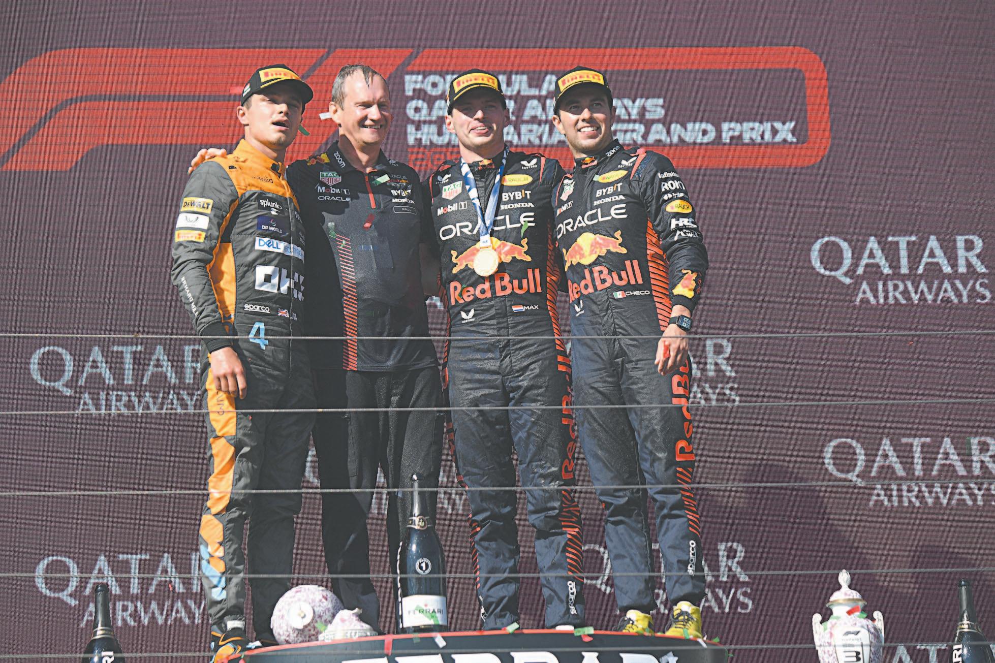 La escudería Red Bull es la primera en conseguir 12 triunfos al hilo en la F1, dos de ellos por el piloto mexicano Checo Pérez. Finaliza en primero y tercero en el GP de Hungría, ayer.