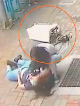 En las imágenes se puede ver cómo la mujer se encuentra en la calle, cuando desde varios metros de alto cae un pesado motor de aire acondicionado.