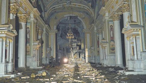 La Catedral de la Transfiguración, uno de los templos ortodoxos más importantes y grandes de Odesa, sufrió graves daños.