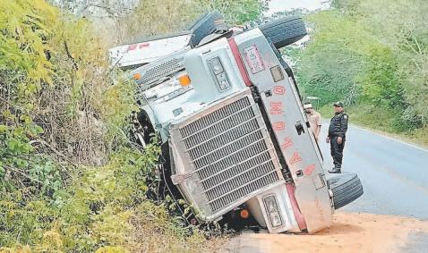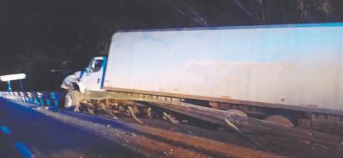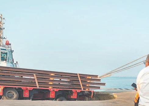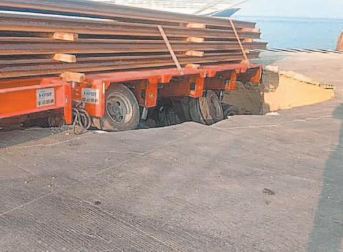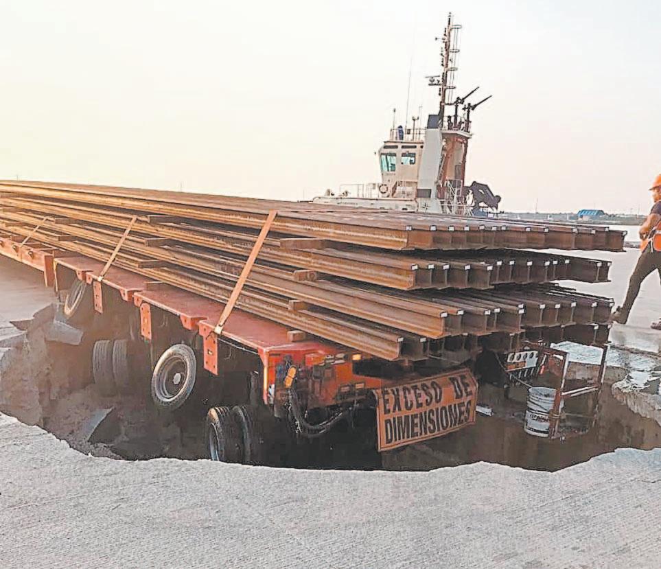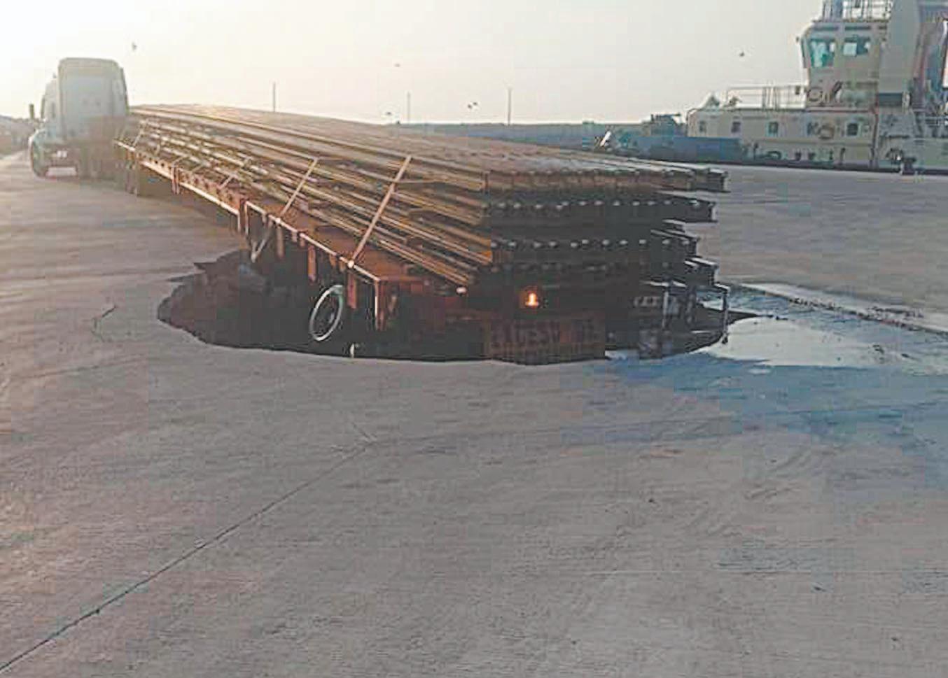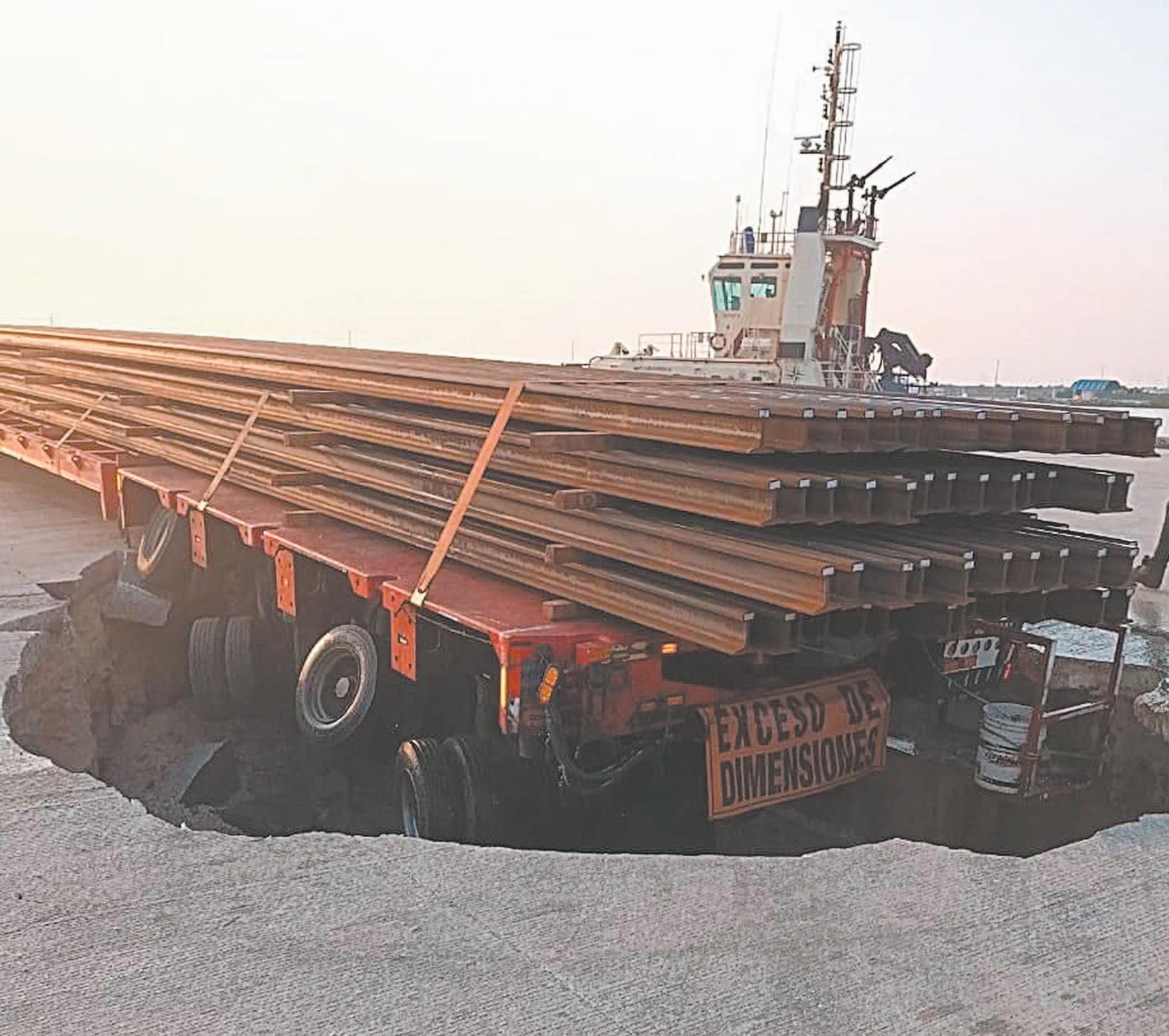 Tráiler cargado de rieles hunde el piso de la terminal remota de Progreso