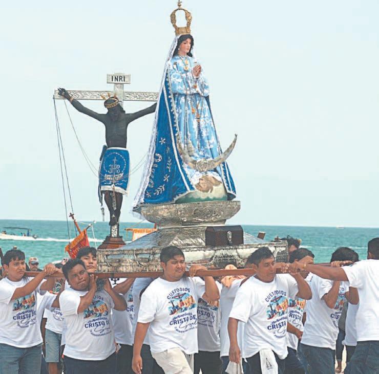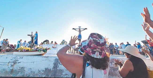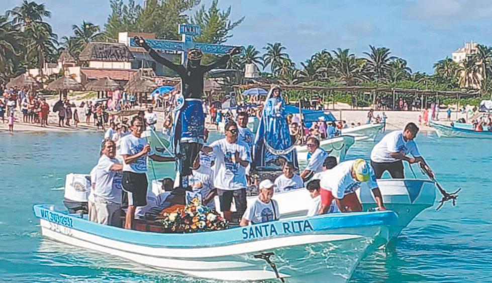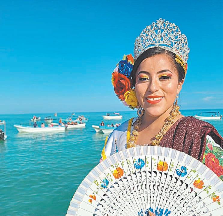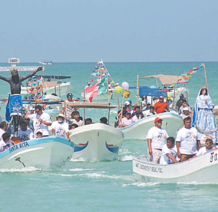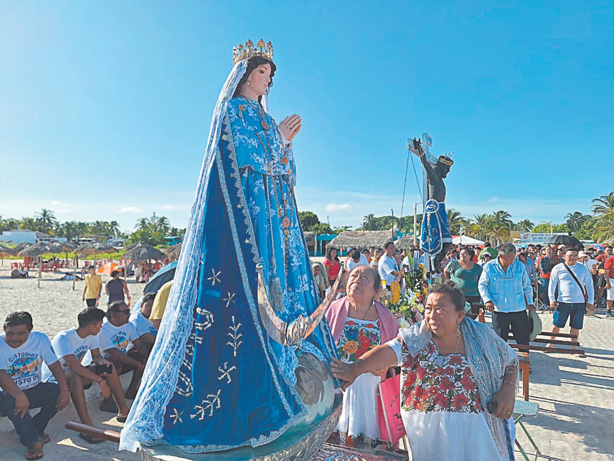 LA Virgen de la Asunción de Tetiz acompañó en su recorrido en lancha al patrono de los pescadores sisaleños; llenas de fe, decenas de familias participaron en la tradicional actividad.- (Nadia Tecuapetla)