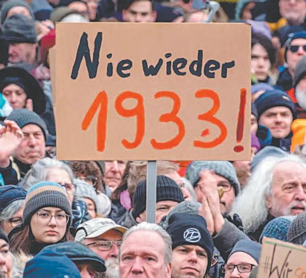 En Liepzig, en Sajonia, donde se reunieron unas 11 mil personas, manifestantes sostenían pancartas en las que se leían mensajes como “Defender la democracia” o “Los fascistas fuera de nuestro Parlamento”, según periodistas presentes.