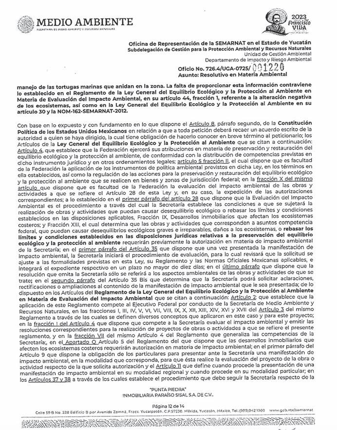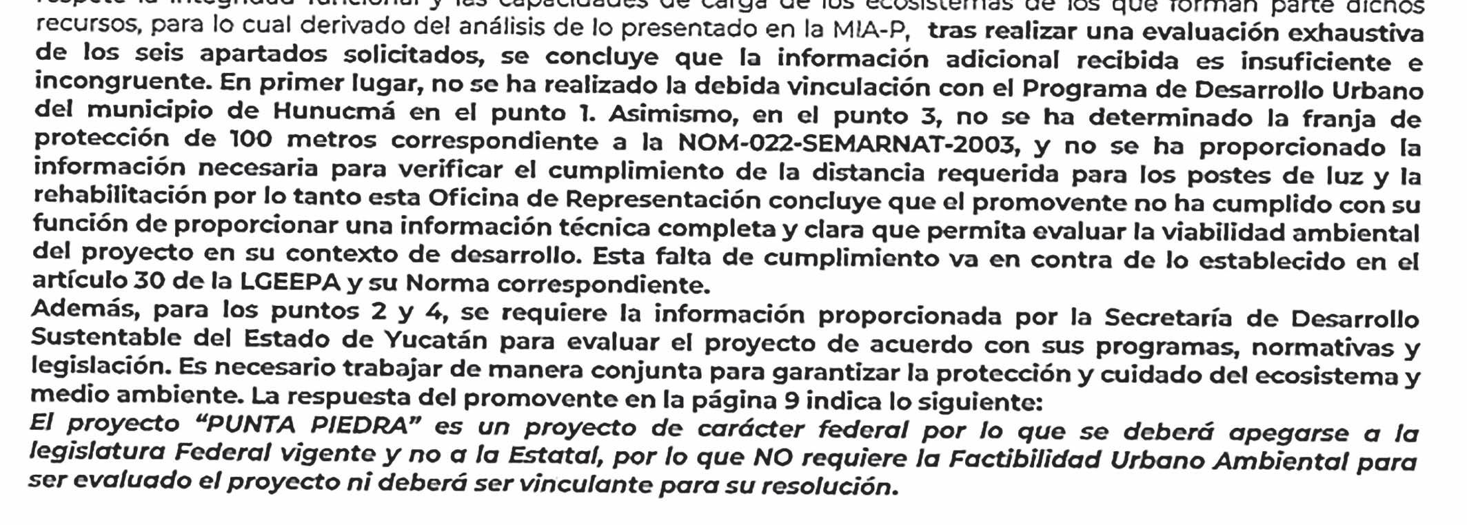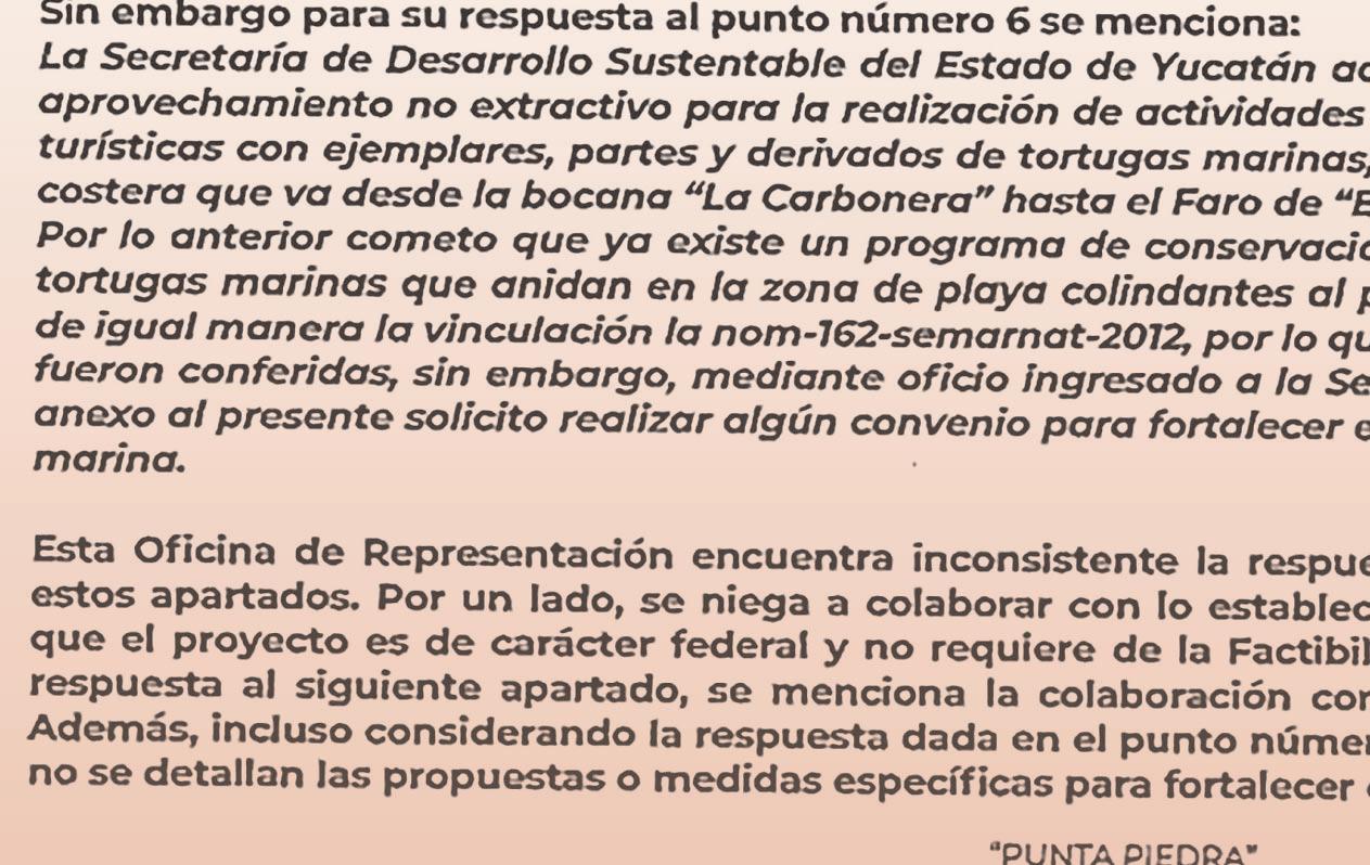 Con el proyecto en Punta Piedra, Inmobiliaria Paraíso Sisal S.A. de C.V. contraviene el reglamento de la Ley General de Equilibrio Ecológico y la Protección al Ambiente; desconoce atribuciones de la Secretaría de Desarrollo Sustentable / Motul, Espita y Tekax obtienen la categoría de Pueblos Mágicos / Reconocen la lucha de don Mario Renato Menéndez con el Premio Carlos Montemayor 2023