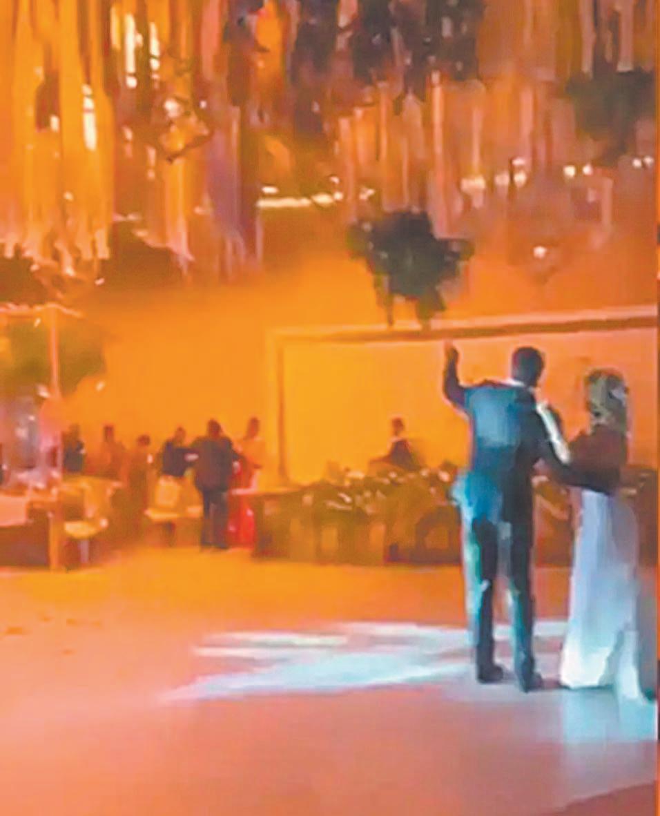 En videos que circulan redes sociales, se puede ver a la pareja de novios bailando cuando comienza a caer a la pista de baile parte de los adornos en llamas. En otro clip, se ve a los invitados de la boda salir corriendo del lugar en el que se organizó la fi esta, mientras una densa capa de humo sale del inmueble.