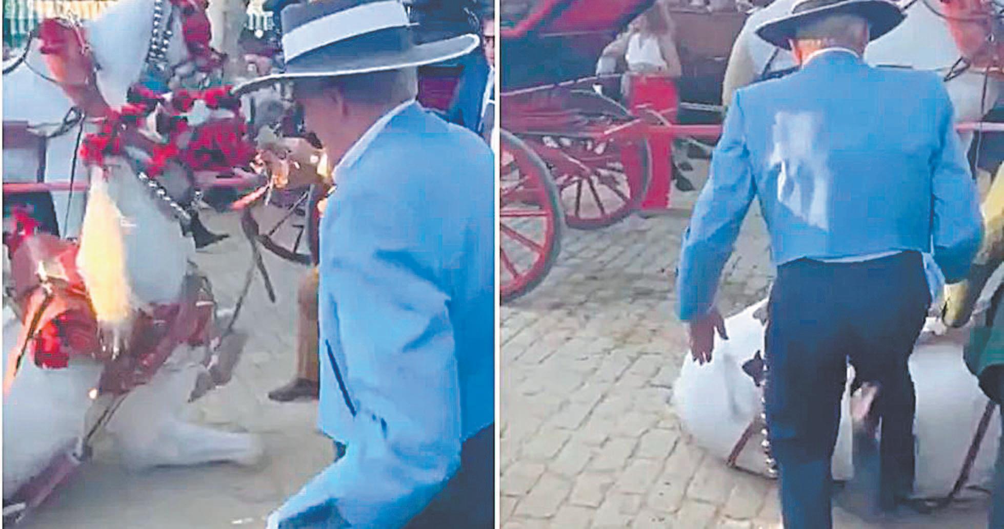 Concretamente, dos hombres de mediana edad eran los responsables del golpeo hacia el caballo, y como puede observarse en las imágenes viralizadas a través de Twitter, varias personas actuaron con reproche ante lo que veían. Les decían soeces palabras como “¡Hijos de puta!, ¡Cabrones!, ¡Que no le deis patadas!”, según se puede escuchar en el vídeo.