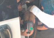 Al ver eso, las personas comenzaron a grabar la situación y a defender al animal, que al final se levantó después de las pa-