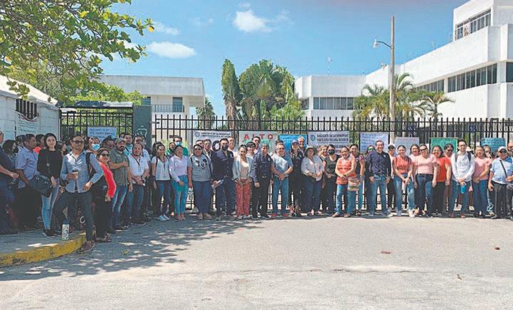 UNOS 30 empleados sindicalizados se plantaron a las puertas de la delegación federal para acusar a la titular en el Estado de maltrato laboral y de estar involucrada en permisos irregulares.- (Daniel Silva)