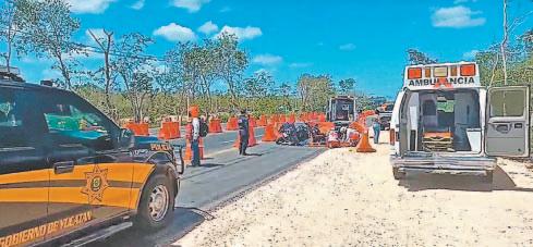 a los heridos y personal de paramédicos cubrieron con mantas y hule los cuerpos de los fallecidos.