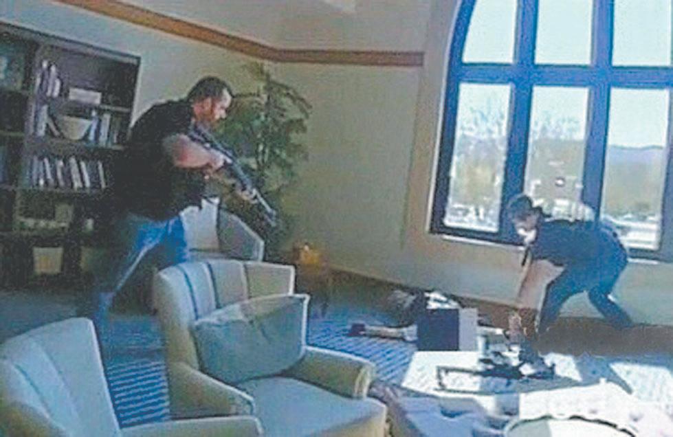 Los oficiales subieron las escaleras, llegaron al segundo piso y entraron al vestíbulo. “Adentro”, gritó uno de los agentes. Ahí se escucha una balacera.