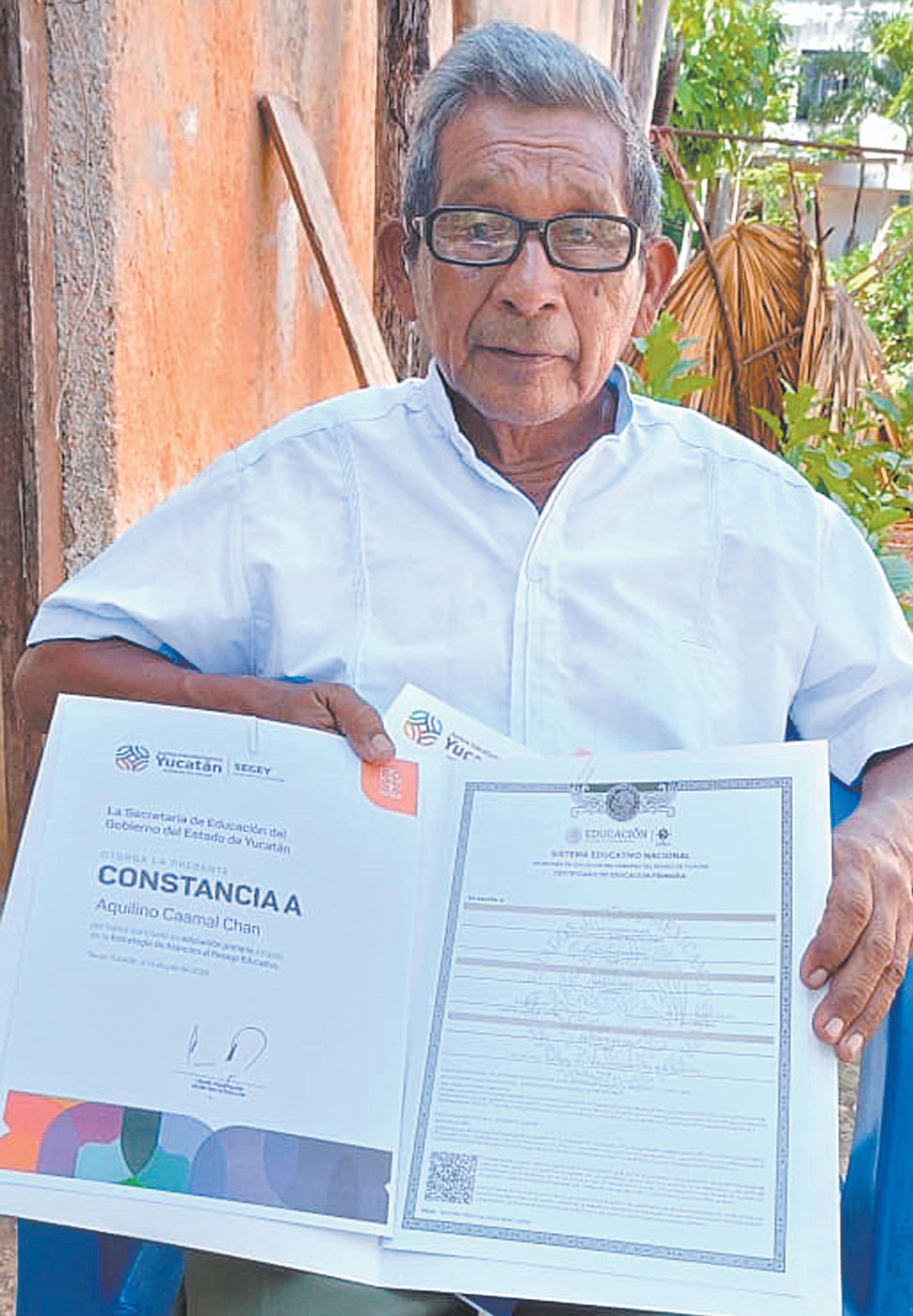 Aquilino Caamal se gradúa en educación básica, a los 77 años
