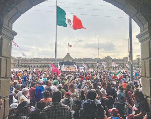 ANTE unas 250 mil personas en la explanada de Palacio Nacional, el Presidente destacó algunos de los logros de su gestión: el Tren Maya, que arrancará en diciembre; la construcción de 12 plantas de ciclo combinado; y el incremento de 135% al salario mínimo, entre otros. Al final, la gente le expresó su respaldo con el grito unánime “¡Es un honor estar con Obrador!”.- (POR ESTO!)