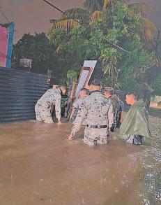 La GN, en coordinación con el Ejército, policías municipales y las Unidades de Protección Civil de Minatitlán y Coatzacoalcos, proporcionaron apoyo en 19 colonias que resultaron afectadas por inundaciones y daños materiales en viviendas y caminos.