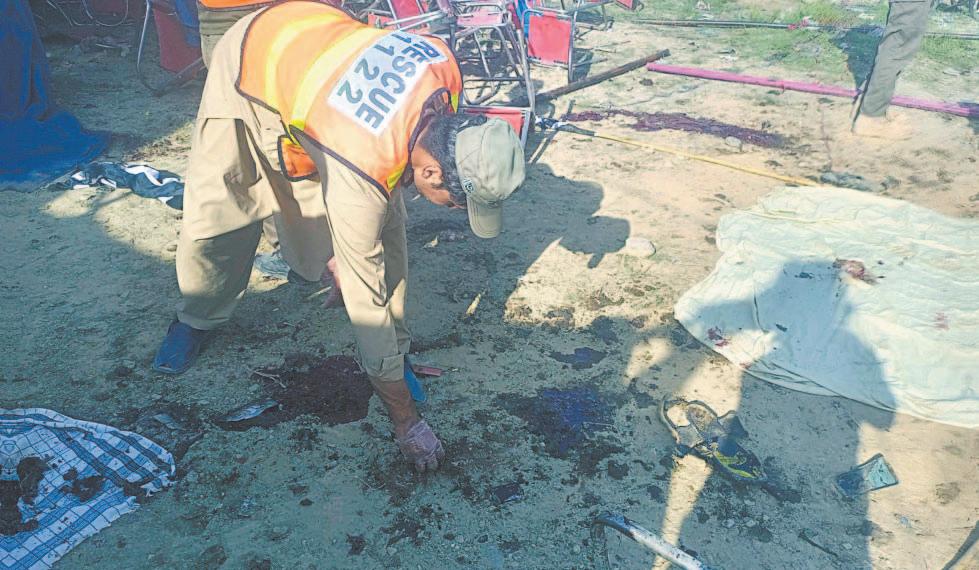 La Policía provincial indicó en un comunicado que el atentado fue obra de un atacante suicida, quien detonó su chaleco explosivo cerca del escenario en el que se encon-