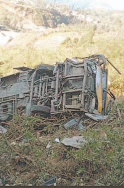El camión, con 50 pasajeros a bordo, cayó a un precipicio.