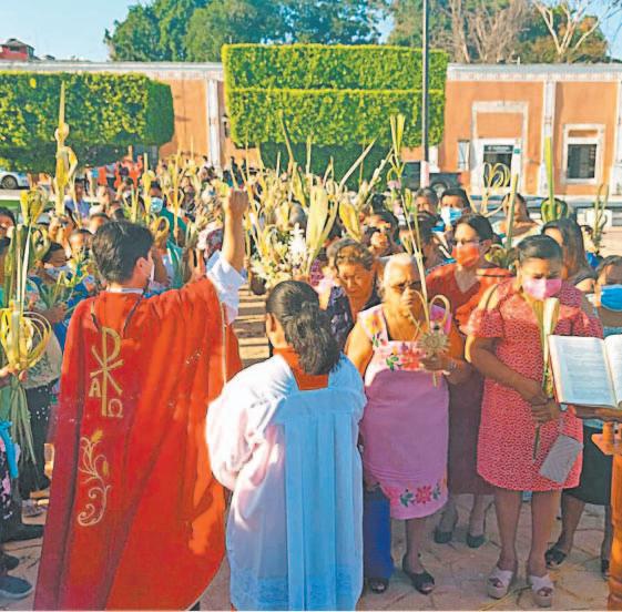 El Papa ocupó su lugar tras seguir en el papamóvil, con una palma trenzada en la mano, a la larga y solemne procesión de cardenales, prelados y fieles. Cada participante llevaba ramas de oliva o palmas.